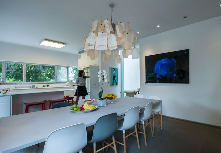 אמנות נחשבת דבר גבוה בלי קשר לכסף, זה יותר עניין תרבותי. כשאנשים רוצים להכיר לי לקוח חדש ואומרים לי שזה מישהו עם המון כסף, אני עונה – אל תביאו מישהו עם כסף, תביאו מישהו עם טעם טוב. זה הרבה יותר חשוב כשבאים לקנות אמנות. גם כשאני מציגה בבית, אני שואפת שהאמנות תהיה מוזיאלית, אבל היא מונגשת מעצם היותה נוכחת במרחב הביתי. אני מאוד אוהבת חיבורים וכאשר משלבים עבודות שונות זו לצד זו, השלם גדול מחלקיו. אני לא יכולה לסבול את התמונה האחת מעל הספה, זה כל כך עולם ישן. מעבר לזה, יש לי תשוקה אמיתית וטוטאלית לאמנות. אני מרגישה לגמרי מחוייבת אליה, וכשאני מדברת על אמנות, אני מאמינה שמרגישים את זה.