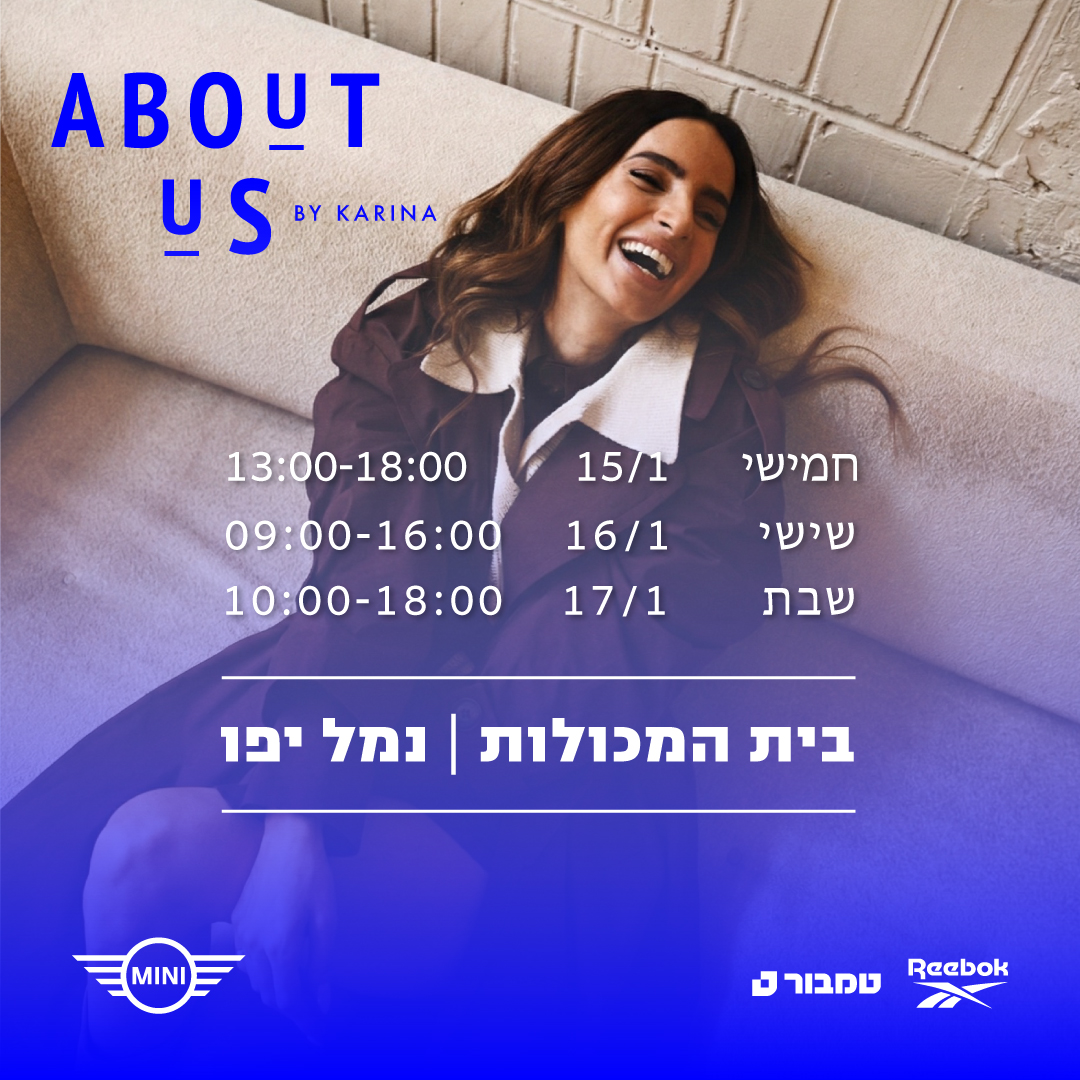יריד About us #15 במהדורת חורף ייחודית 40 חנויות של עיצוב ישראלי מכל תחומי הלייף סטייל, כשהפעם אנחנו נותנים מקום לצבע וטקסטורה. שותפים מרגשים, מהדורות מוגבלות, מותגים חדשים ואווירה מחשמלת של יצירה ישראלית אז איפה? מתי? חמישי 15/01 | 13:00-18:00 שישי 16/01 | 09:00-16:00 בית המכולות, נמל יפו