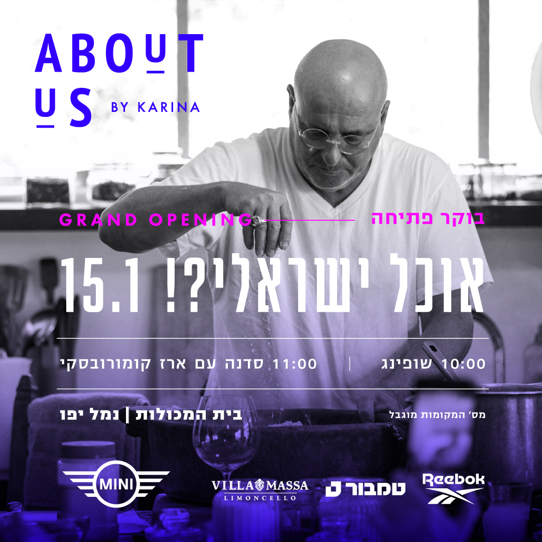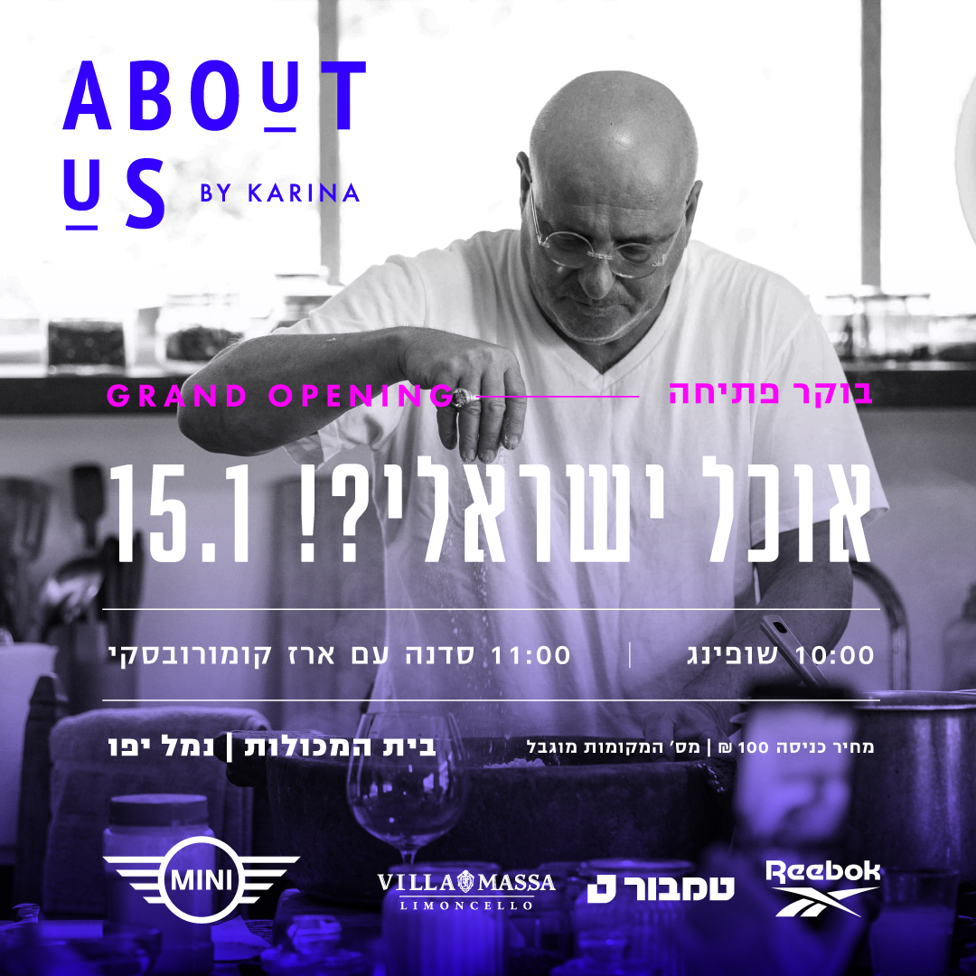 אוכל ישראלי?! מי קובע מה שייך לצלחת המקומית ומה נשאר בחוץ- המסורת, הגיאוגרפיה, הזיכרון או היד שמבשלת? יריד ABOUT US נפתח במפגש ייחודי עם השף ארז קומרובסקי, מהקולות הבולטים והמשפיעים של המטבח המקומי. ארז מביא איתו מבט עמוק ובלתי מתפשר על חומרי גלם, שורשים, השפעות ורגש. מפגש מעורר השראה על אוכל ישראלי כתרבות חיה- כזו